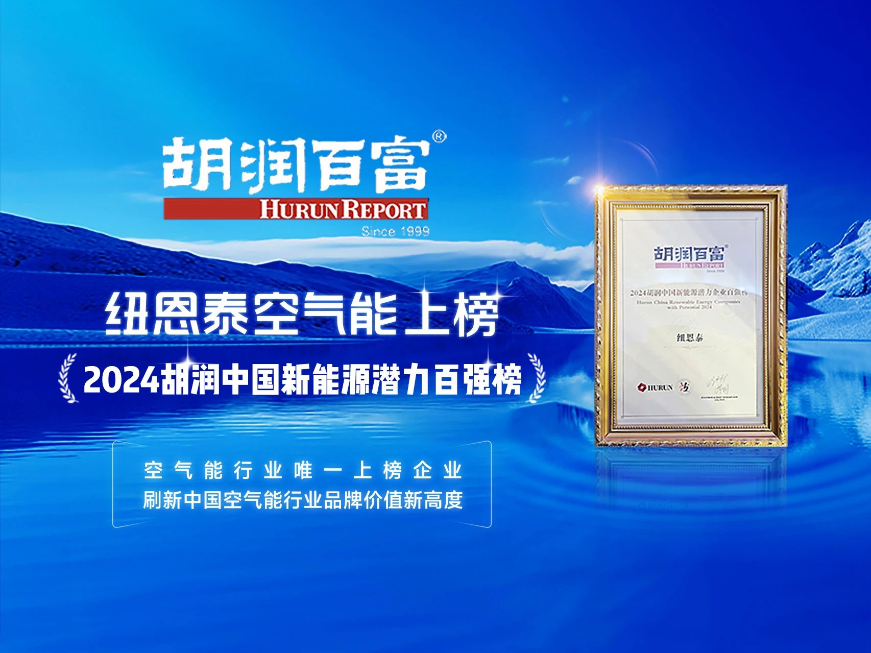 熱泵行業領軍品牌紐恩泰,上榜2024胡潤中國新能源潛力企業百強榜